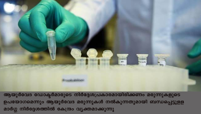 ആയുര്വേദ ഡോക്ടര്മാരുടെ നിര്ദ്ദേശപ്രകാരമായിരിക്കണം മരുന്നുകളുടെ ഉപയോഗമെന്നും ആയുര്വേദ മരുന്നുകള് നല്കുന്നതുമായി ബന്ധപ്പെട്ടുളള മാര്ഗ്ഗ നിര്ദ്ദേശത്തില് കേന്ദ്രം വ്യക്തമാക്കുന്നു. ചെറിയ ലക്ഷണങ്ങള് മാത്രമുളളവര്ക്ക് ആയുഷ് 64 ടാബ്ലറ്റ് നല്കാവുന്നതാണ്. മഞ്ഞളും ഉപ്പുമിട്ട വെളളം ഗാര്ഗിള് ചെയ്യാം. ഗാര്ഗിള് ചെയ്യുന്നതിന് ത്രിഫലയും ഉപയോഗിക്കാവുന്നതാണ്.