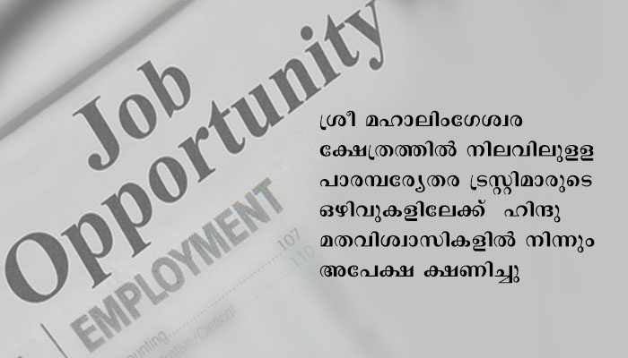 കാസർകോഡ് പാരമ്പര്യേതര ട്രസ്റ്റിമാരുടെ ഒഴിവ്