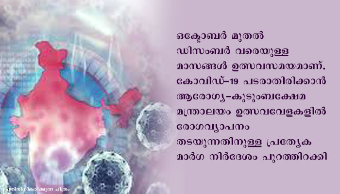 ഒക്ടോബർ മുതൽ ഡിസംബർ വരെയുള്ള മാസങ്ങൾ ഉത്സവസമയമാണ്. കോവിഡ്‌ -19 പടരാതിരിക്കാൻ ആരോഗ്യ-കുടുംബക്ഷേമ മന്ത്രാലയം ഉത്സവവേളകളിൽ  രോഗവ്യാപനം തടയുന്നതിനുള്ള പ്രത്യേക മാർഗ നിർദേശം പുറത്തിറക്കി.