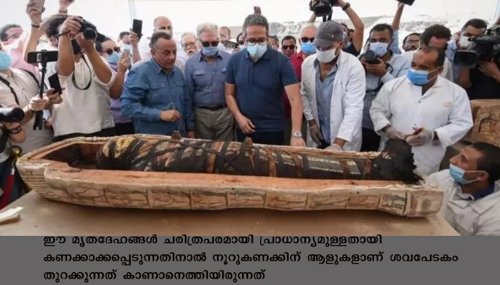 സക്കാറ: ഈജിപ്തില് മരിച്ചവരുടെ പട്ടണമായ സക്കാറയില് നിന്ന് കണ്ടെത്തിയ ശവപേടകങ്ങള് ആദ്യമായി പൊതുജനങ്ങള്ക്കായി തുറന്നു. മരം കൊണ്ടു നിര്മ്മിച്ച 59 മമ്മികളാണ് പുരാവസ്തു ഗവേഷകര് കണ്ടെത്തിയത്. 2,500 കൊല്ലം പഴക്കമുള്ള ഈ പേടകങ്ങള്ക്ക് ഇതുവരെ കേടുപാടുകളൊന്നും സംഭവിച്ചിട്ടില്ലെന്നും പുരോഹിതര്, സമൂഹത്തിലെ ഉയര്ന്നവര് എന്നിവരുടെ ഭൗതീകശരീരമാണ് പെട്ടികളില് സൂക്ഷിച്ചിരിക്കുന്നതെന്നും ടൂറിസം ആന്ഡ് ആന്റിക്വിറ്റീസ് വകുപ്പ് അറിയിച്ചു. ഈ മൃതദേഹങ്ങള് ചരിത്രപരമായി പ്രാധാന്യമുള്ളതായി കണക്കാക്കപ്പെടുന്നതിനാല് നൂറുകണക്കിന് ആളുകളാണ് ശവപേടകം തുറക്കുന്നത് കാണാനെത്തിയിരുന്നത്.