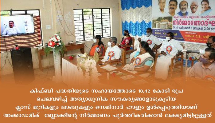 സംസ്ഥാന ഉന്നത വിദ്യാഭ്യാസ വകുപ്പിന് കീഴില്‍ പൊതുവിദ്യാഭ്യാസ സംരക്ഷണയജ്ഞത്തിന്റെ ഭാഗമായി കിഫ്ബി പദ്ധതിയുടെ സഹായത്തോടെ 10.42 കോടി രൂപ ചെലവഴിച്ച് അത്യാധുനിക സൗകര്യങ്ങളോടുകൂടിയ ക്ലാസ് മുറികളും ലാബുകളും സെമിനാര്‍ ഹാളും ഉള്‍പ്പെടുത്തിയാണ് അക്കാഡമിക്  ബ്ലോക്കിന്റെ നിര്‍മ്മാണം പൂര്‍ത്തീകരിക്കാന്‍ ലക്ഷ്യമിട്ടിട്ടുള്ളത്.