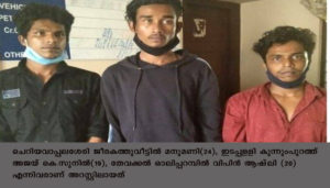 നെടുമ്പാശേരി: കഞ്ചാവ് വില്പ്പനയുമായി ബന്ധപ്പെട്ട തര്ക്കത്തിനിടെ കൊലചെയ്യപ്പെട്ട കേസില് മൂന്നുപേരെ പോലീസ് അറസ്റ്റ് ചെയ്തു. ചെറിയവാപ്പലശേരി ജീരകത്തുവീട്ടില് മനുമണി(24), ഇടപ്പളളി കുന്നുംപുറത്ത് അജയ് കെ.സുനില്(19), തേവക്കല് ഓലിപ്പറമ്പില് വിപിന് ആഷ്ലി (20) എന്നിവരാണ് അറസ്റ്റിലായത്.