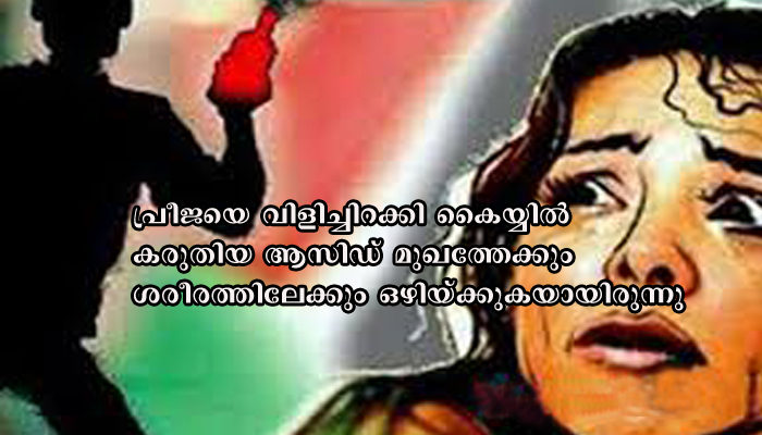 പ്രീജയുടെ ജോലിസ്ഥലത്തു വെച്ചാണ് ആക്രമണം ഉണ്ടായത്. വഴക്കിന് ശേഷം ഓഫിസിൽ പോയ ഭാര്യയെ പിന്തുടർന്ന് ബിനിഷ് ഓഫിസിലെത്തി. പ്രീജയെ വിളിച്ചിറക്കി കൈയ്യിൽ കരുതിയ ആസിഡ് മുഖത്തേക്കും ശരീരത്തിലേക്കും ഒഴിയ്ക്കുകയായിരുന്നു. പ്രീജയുടെ നിലവിളി കേട്ട് സമീപത്തുണ്ടായിരുന്നവർ ഓടിയെത്തി. ബിനീഷിനെ തടഞ്ഞുവെച്ച് പ്രീജയെ ആശുപത്രിയിലെത്തിച്ചു. ആക്രമണത്തിൽ ഇയാൾക്കും പൊള്ളലേറ്റു. ബിനീഷും ചികിത്സയിലാണ്.