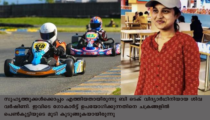 സുഹൃത്തുക്കള്ക്കൊപ്പം എത്തിയതായിരുന്നു ബി ടെക് വിദ്യാര്ഥിനിയായ ശിവ വർഷിണി. ഇവിടെ ഗോകാര്ട്ട് ഉപയോഗിക്കുന്നതിനെ ചക്രങ്ങളില് പെണ്കുട്ടിയുടെ മുടി കുടുങ്ങുകയായിരുന്നു. ഹെല്മറ്റ് ധരിച്ചിരുന്നെങ്കിലും അപകടം ഒഴിവാക്കാൻ കഴിഞ്ഞില്ല.ഗോകാര്ട്ടിന്റെ ചക്രത്തില് ശിവവര്ഷിണിയുടെ മുടി കുടുങ്ങി ശിരോചര്മം പറിഞ്ഞു വേർപെട്ടു. ശിവവര്ഷിണി ധരിച്ചിരുന്ന ഹെല്മറ്റും തകര്ന്ന നിലയിലായിരുന്നു.തലയ്ക്കു ഗുരുതരമായി പരിക്കേൽക്കുകയും ചെയ്തു.