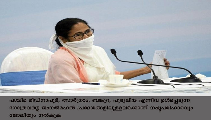 “മാവോയിസ്റ്റ് അക്രമത്തിൽ ഒരു ദശകത്തിലേറെക്കാലം മരണമടഞ്ഞ അല്ലെങ്കിൽ കാണാതായവരുടെ കുടുംബാംഗങ്ങൾക്ക് 4 ലക്ഷം രൂപ സാമ്പത്തിക നഷ്ടപരിഹാരം നൽകും, അടുത്ത ബന്ധുക്കളിൽ ഒരാൾക്ക് പ്രത്യേക ഹോം ഗാർഡായി ജോലി നൽകും,” മമതാ ബാനർജി പറഞ്ഞു. ജംഗൽമഹൽ പ്രദേശം 2008 മുതൽ 2012 വരെ മാവോയിസ്റ്റ് ബാധിത മേഖലയായിരുന്നു.