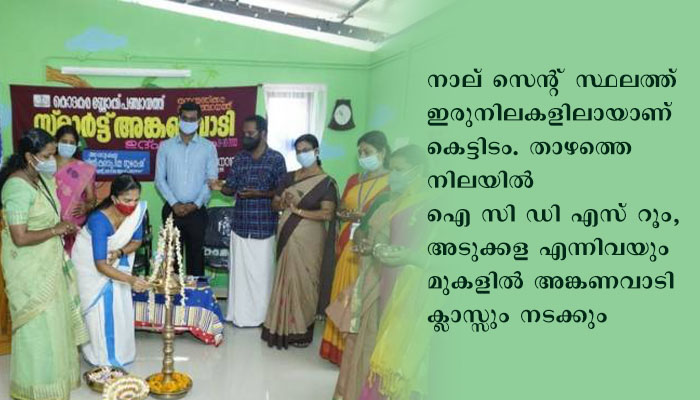 ബ്ലോക്ക് പഞ്ചായത്തിന്റെ 23 ലക്ഷം രൂപ ചെലവില് തൊഴിലുറപ്പ് പദ്ധതിയില് ഉള്പ്പെടുത്തിയാണ് അങ്കണവാടി പണി പൂര്ത്തീകരിച്ചത്. നാല് സെന്റ് സ്ഥലത്ത് ഇരുനിലകളിലായാണ് കെട്ടിടം. താഴത്തെ നിലയില് ഐ സി ഡി എസ് റൂം, അടുക്കള എന്നിവയും മുകളില് അങ്കണവാടി ക്ലാസ്സും നടക്കും.