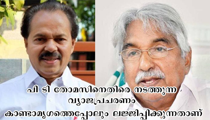 പി ടി തോമസിനെതിരെ നടത്തുന്ന വ്യാജപ്രചരണം കാണ്ടാമൃഗത്തെപ്പോലും ലജ്ജിപ്പിക്കുന്നതാണെന്ന് അദ്ദേഹം പറഞ്ഞു.