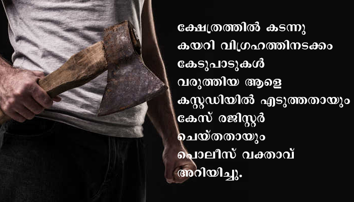 ക്ഷേത്രത്തിൽ കടന്നു കയറി വിഗ്രഹത്തിനടക്കം കേടുപാടുകൾ വരുത്തിയ ആളെ കസ്റ്റഡിയിലെടുത്തതായും കേസ് രജിസ്റ്റർ ചെയ്തതായും പൊലീസ് വക്താവ് അറിയിച്ചു. സംഭവത്തെ കുറിച്ച് അന്വേഷിച്ച് 24 മണിക്കൂറിനുള്ളിൽ റിപ്പോർട് നൽകാൻ ജില്ലാ പൊലീസ് സൂപ്രണ്ട് ഉത്തരവിട്ടിരുന്നു. മുഹമ്മദ് ഇസ്മയിൽ എന്നയാളാണ് അറസ്റ്റിലായത്.