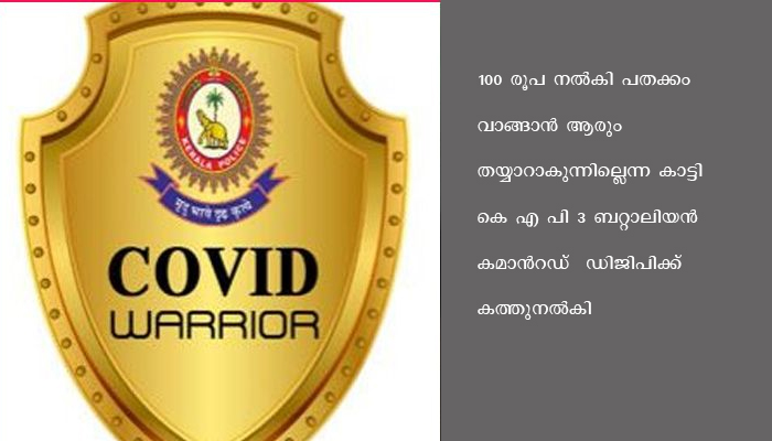 തിരുവനന്തപുരം: കോവിഡ് ഡ്യൂട്ടി ചെയ്ത പോലീസുകാര്ക്ക് ബഹുമതിയായി കോവിഡ് വരിയര് എന്ന ചെറുപതക്കം നല്കാന് സര്ക്കാര് തീരുമാനിച്ചിരുന്നു. എന്നാല് 100 രൂപ നല്കിയാണ് പതക്കം വാങ്ങേണ്ടത്. 100 രൂപ നല്കി പതക്കം വാങ്ങാന് ആരും തയ്യാറാകുന്നില്ലെന്ന കാട്ടി കെഎപി 3 ബറ്റാലിയന് കമാന്റഡ് ഡിജിപിക്ക് കത്തുനല്കി. ബഹുമതിയായി നല്കേണ്ട പതക്കം 100 രൂപ നല്കി വാങ്ങണമെന്ന ഡിജിപിയുടെ നിര്ദ്ദേശത്തിനെതിരെ സേനയില് അമര്ഷം പുകയുയുകയാണ്.