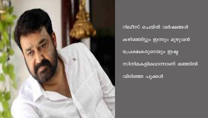 റിലീസ് ചെയ്ത് വര്ഷങ്ങള് കഴിഞ്ഞിട്ടും ഇന്നും മുഴുവൻ പ്രേക്ഷകരുടെയും ഇഷ്ട സിനിമകളിലൊന്നാണ് മഞ്ഞില് വിരിഞ്ഞ പൂക്കള്.