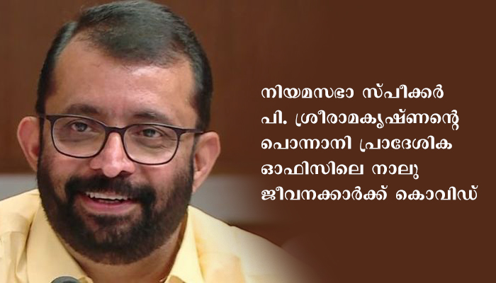പൊന്നാനി: നിയമസഭാ സ്പീക്കര് പി. ശ്രീരാമകൃഷ്ണന്റെ പൊന്നാനി പ്രാദേശിക ഓഫിസിലെ നാലു ജീവനക്കാര്ക്ക് കൊവിഡ്.