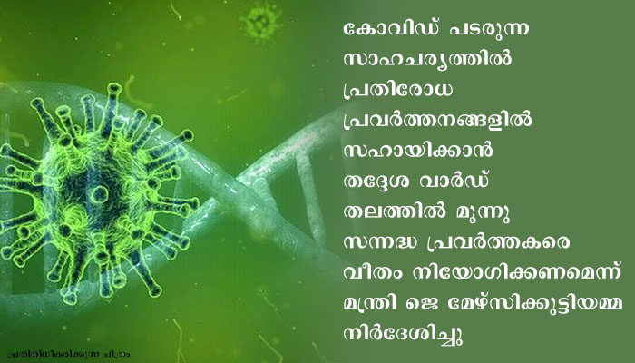 കൊല്ലം: കോവിഡ് പടരുന്ന സാഹചര്യത്തില് പ്രതിരോധ പ്രവര്ത്തനങ്ങളില് സഹായിക്കാന് തദ്ദേശ വാര്ഡ് തലത്തില് മൂന്നു സന്നദ്ധ പ്രവര്ത്തകരെ വീതം നിയോഗിക്കണമെന്ന് മന്ത്രി ജെ മേഴ്സിക്കുട്ടിയമ്മ നിര്ദേശിച്ചു. ഓരോ പഞ്ചായത്തും സന്നദ്ധപ്രവര്ത്തകരെ കണ്ടെത്തി നിയോഗിക്കണം. കോവിഡ് പ്രതിരോധ പ്രവര്ത്തനങ്ങള് അവലോകനം ചെയ്യാന് ഇന്നലെ(ഒക്ടോബര് 12) കൂടിയ ഓണ്ലൈന് യോഗത്തിലായിരുന്നു മന്ത്രിയുടെ നിര്ദ്ദേശം. മത്സ്യത്തൊഴിലാളികള് ഉള്പ്പെടെയുള്ളവര് താമസിക്കുന്ന വീടുകളില് ഒരു ശൗചാലയം മാത്രമുള്ള ഇടങ്ങളില് രോഗബാധിതര് ഉണ്ടായാല് അവരെ പ്രത്യേകം കേന്ദ്രങ്ങളിലേക്ക് മാറ്റി പാര്പ്പിക്കണം. ഗൃഹചികിത്സയ്ക്ക് സൗകര്യമില്ലാത്ത സാഹചര്യത്തില് പ്രത്യേക സി എഫ് എല് ടി സി കേന്ദ്രങ്ങളില് അവരെ നിരീക്ഷിക്കാന് സന്നദ്ധപ്രവര്ത്തകര്ക്ക് കഴിയും. ആഹാരം മരുന്ന് എന്നിവ കൃത്യമായി എത്തിക്കാന് തദ്ദേശസ്ഥാപനങ്ങള് മുന്കൈയെടുക്കണം. നിലവിലുള്ള ഒരു സി എഫ് എല് ടി സി യും നിര്ത്തലാക്കരുതെന്ന് മന്ത്രി നിര്ദേശിച്ചു.