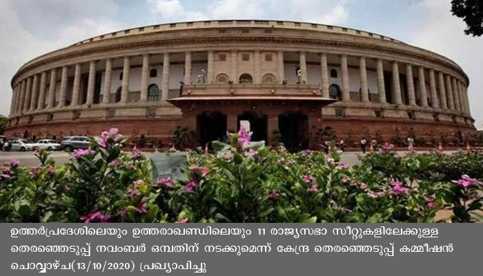 രാജ്യസഭയില് യുപിയില് 10 ഉം ഉത്തരാഖണ്ഡില് ഒരു സീറ്റുമാണ് അടുത്ത മാസം ഒഴിവു വരുന്നത്. നാമനിര്ദേശ പത്രിക സമര്പ്പിക്കാനുള്ള അവസാന തീയതി ഒക്ടോബര് 27 ആയിരിക്കും. സ്ഥാനാര്ത്ഥിത്വം പിന്വലിക്കാനുള്ള അവസാന തീയതി നവംബര് 2 ആണ്.