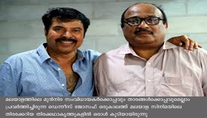 മലയാളത്തിലെ മുന്നിര സംവിധായകര്ക്കൊപ്പവും താരങ്ങള്ക്കൊപ്പവുമെല്ലാം പ്രവര്ത്തിച്ചിരുന്ന ഡെന്നീസ് ജോസഫ് ഒരുകാലത്ത് മലയാള സിനിമയിലെ തിരക്കേറിയ തിരക്കഥാകൃത്തുകളില് ഒരാള് കൂടിയായിരുന്നു. എഴുത്തിനൊപ്പം തന്നെ ആറ് സിനിമകളോളം സംവിധാനം ചെയ്തും ഡെന്നീസ് ജോസഫ് മോളിവുഡില് തിളങ്ങിയിരുന്നു.