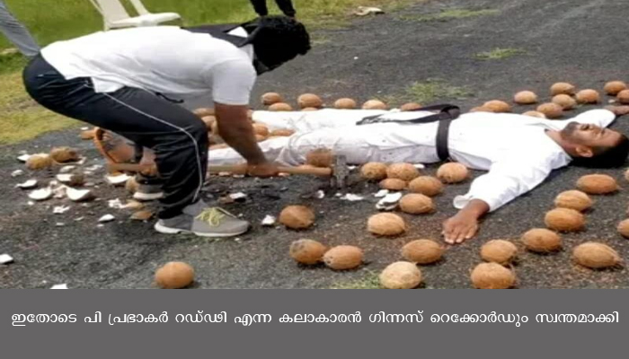ഹൈദരാബാദ്: ആന്ധ്രയിലെ ഒരു ആയോധന കലാകാരൻ തന്റെ വിദ്യാർത്ഥിയെ നിലത്ത് കിടത്തി ചുറ്റും തേങ്ങകൾ നിരത്തി ചുറ്റിക കൊണ്ട് അടിച്ചുടച്ചു, അതും കണ്ണും കെട്ടി. ഉടച്ച തേങ്ങകളുടെ എണ്ണം കേട്ടാൽ കണ്ണുതള്ളിപ്പോകും ,ഒരു മിനിറ്റിൽ 49.