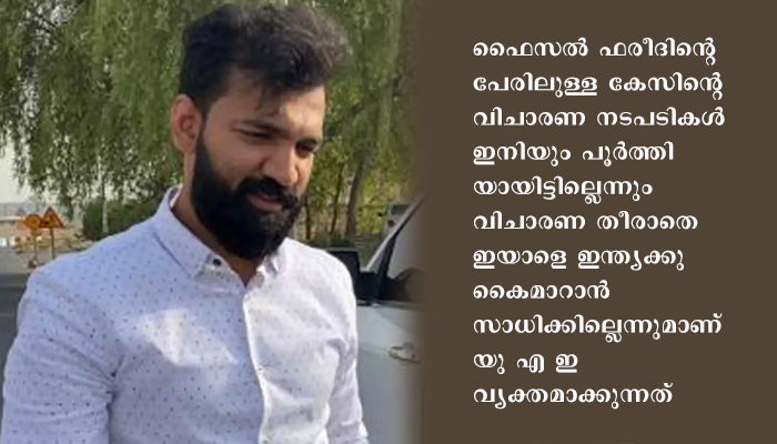 ഫൈസൽ ഫരീദിനെ കൈമാറാൻ വിസമ്മതിച്ച് യു എ ഇ വിചാരണ പൂർത്തിയാക്കാനുണ്ടെന്ന് വിശദീകരണം