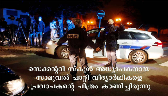 സെക്കന്ററി സ്കൂള് അധ്യാപകനായ സാമുവല് പാറ്റി വിദ്യാര്ഥികളെ പ്രവാചകന്റെ ചിത്രം കാണിച്ചിരുന്നു. ഒരുമാസം മുന്പ് നടന്ന ഈ സംഭവം വലിയ പ്രതിഷേധത്തിന് കാരണമായി. മുസ്ലീം വിഭാഗത്തില്പ്പെട്ട വിദ്യാര്ഥികളോട് ക്ലാസില് നിന്ന് ഇറങ്ങി പോവാന് അഭ്യര്ഥിച്ചതിന് ശേഷമാണ് പാറ്റി മറ്റ് വിദ്യാര്ഥികളെ കാര്ട്ടൂണ് കാണിച്ചത്.