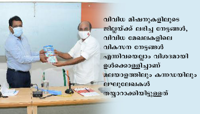 വിവിധ മിഷനുകളിലൂടെ ജില്ലയ്ക്ക് ലഭിച്ച നേട്ടങ്ങള്‍, വിവിധ മേഖലകളിലെ വികസന നേട്ടങ്ങള്‍ എന്നിവയെല്ലാം വിശദമായി ഉള്‍ക്കൊള്ളിച്ചാണ് മലയാളത്തിലും കന്നഡയിലും ലഘുലേഖകള്‍ തയ്യാറാക്കിയിട്ടുള്ളത്.