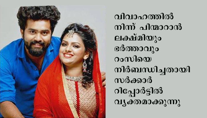 വിവാഹത്തില് നിന്ന് പിന്മാറാന് ലക്ഷ്മിയും ഭര്ത്താവും റംസിയെ നിര്ബന്ധിച്ചതായി സര്ക്കാര് റിപ്പോര്ട്ടില് വ്യക്തമാക്കുന്നു. ഒളിവില് പോയ ഹാരിസിനെ സെപ്തംബര് 7ന് പോലീസ് അറസ്റ്റ് ചെയ്തിരുന്നു. .
