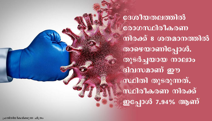 നിലവില് ചികിത്സയിലുള്ളത് രാജ്യത്ത് ആകെ രോഗബാധിതരായവരുടെ 10.23% മാത്രമാണ്.