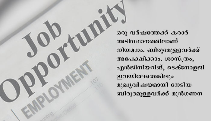 തിരുവനന്തപുരം: വനിതാ ശിശു വികസന വകുപ്പിന് കീഴിലുള്ള നാഷണൽ ന്യൂട്രീഷൻ മിഷൻ (സമ്പുഷ്ട കേരളം) പദ്ധതിയിൽ ബ്ലോക്ക് പ്രോജക്ട് അസിസ്റ്റന്റ് തസ്തികയിലേക്ക് അപേക്ഷ ക്ഷണിച്ചു. ഒരു വർഷത്തേക്ക് കരാർ അടിസ്ഥാനത്തിലാണ് നിയമനം. ബിരുദമുള്ളവർക്ക് അപേക്ഷിക്കാം. ശാസ്ത്രം, എൻജിനിയറിങ്, ടെക്‌നോളജി ഇവയിലേതെങ്കിലും മുഖ്യവിഷയമായി നേടിയ ബിരുദമുള്ളവർക്ക് മുൻഗണന. കമ്മ്യൂണിറ്റി/ തദ്ദേശ സ്ഥാപനങ്ങളിൽ ഒരു വർഷത്തിൽ കുറയാതെയുള്ള പ്രവൃത്തിപരിചയം വേണം. പ്രായപരിധി 35 വയസ്സ് (2020 ജൂലായ് 31ന് 35 വയസ് കവിയാൻ പാടില്ല). അപേക്ഷ അനുബന്ധ രേഖകൾ സഹിതം നവംബർ അഞ്ചിന് വൈകിട്ട് അഞ്ചിനു മുൻപ് ജില്ലാ പ്രോഗ്രാം ഓഫീസർ, ജില്ലാതല ഐ.സി.ഡി.എസ് സെൽ, പൂജപ്പുര, തിരുവനന്തപുരം -695012 എന്ന വിലാസത്തിൽ ലഭ്യമാക്കണം. ഫോൺ: 8330002311, 8330002360. വിശദവിവരങ്ങൾക്ക്  http://rb.gy/7crg85  എന്ന ലിങ്ക് സന്ദർശിക്കുക.
