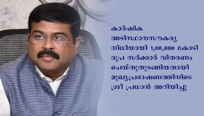 കാര്‍ഷിക അടിസ്ഥാനസൗകര്യ നിധിയായി 1,00,000 കോടി രൂപ സർക്കാർ വിതരണം ചെയ്തുതുടങ്ങിയതായി മുഖ്യപ്രഭാഷണത്തിനിടെ ശ്രീ പ്രധാൻ അറിയിച്ചു.