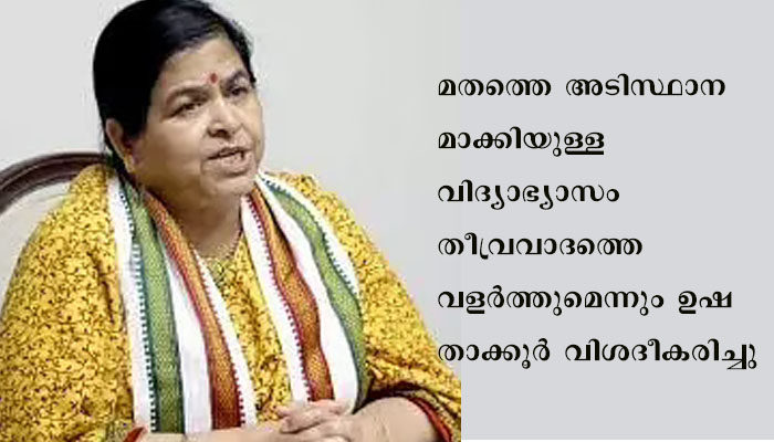 കുട്ടികൾക്ക് ഒരേ വിദ്യാഭ്യാസ രീതിയാണ് നല്‍കേണ്ടത്. മതത്തെ അടിസ്ഥാനമാക്കിയുള്ള വിദ്യാഭ്യാസം തീവ്രവാദത്തെ വളര്‍ത്തുമെന്നും അവര്‍ വിശദീകരിച്ചു.ഭീകരവാദത്തിന്റെ ഫാക്ടറി ആയി മാറിയിരിക്കുകയാണ് ജമ്മു കശ്മീര്‍ എന്നും ഉഷ താക്കൂര്‍ പറഞ്ഞു.