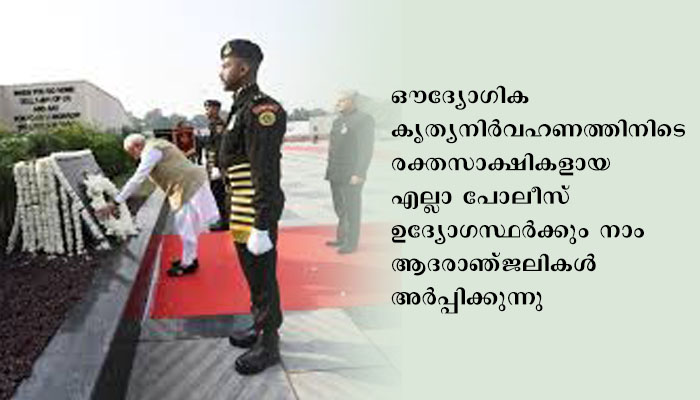 ന്യൂ ഡൽഹി: ഔദ്യോഗിക കൃത്യനിര്വഹണത്തിനിടെ രക്തസാക്ഷികളായ പൊലീസ് ഉദ്യോഗസ്ഥര്ക്ക് പൊലീസ് സ്മരണ ദിനത്തില് പ്രധാനമന്ത്രി ശ്രീ. നരേന്ദ്ര മോദി പ്രണാമമര്പ്പിച്ചു.