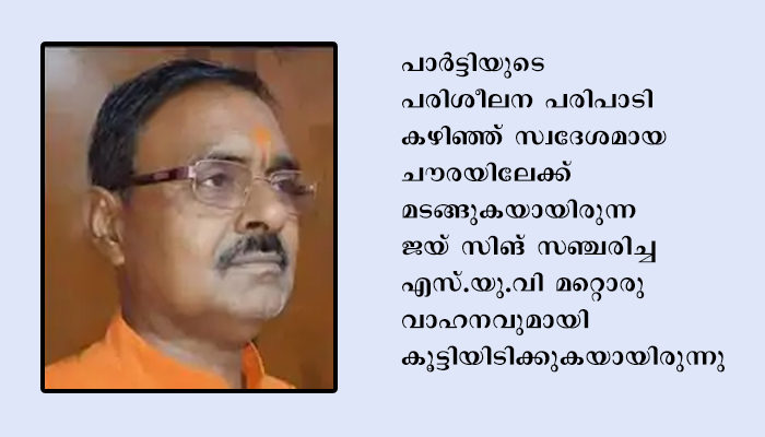 ജയ് വിജയ് സിങ് (58) റോഡപകടത്തില് മരിച്ചു. ബി.ജെ.പിയുടെ ജില്ലാ യൂണിറ്റ് മുന് പ്രസിഡന്റായിരുന്നു.