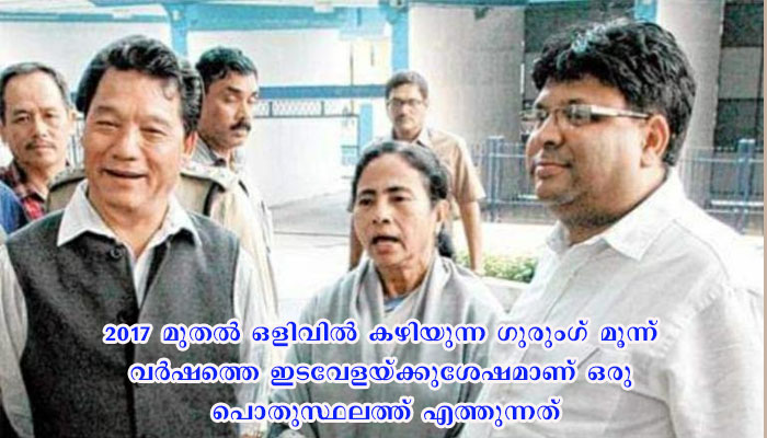 ’12 വര്‍ഷമായി ഞങ്ങള്‍ ബി.ജെ.പിയെ പിന്തുണയ്ക്കുന്നു. എന്നാല്‍ ഞങ്ങളുടെ ആവശ്യങ്ങളൊന്നും അവർ പരിഗണിച്ചില്ല. ഇനി എന്‍.ഡി.എയെ പിന്തുണയ്ക്കില്ല’, ഗുരുംഗ് പറഞ്ഞു. പ്രത്യേക ഗൂര്‍ഖാ സംസ്ഥാനത്തിനുവേണ്ടി പോരാട്ടം നടത്തുന്ന പാര്‍ട്ടിയാണ് ഗൂര്‍ഖാ ജനമുക്തി മോര്‍ച്ച. 2017 മുതല്‍ ഒളിവില്‍ കഴിയുന്ന ഗുരുംഗ് മൂന്ന് വര്‍ഷത്തെ ഇടവേളയ്ക്കുശേഷമാണ് ഒരു പൊതുസ്ഥലത്ത് എത്തുന്നത്.