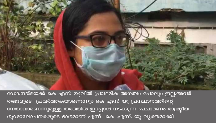ഡോ.നജ്മയക്ക് കെ എസ് യുവില് പ്രാഥമിക അഗത്വം പോലും ഇല്ല.