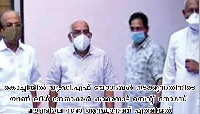 24-10 -2020 വെള്ളിയാഴ്ച വൈകുന്നേരം അഞ്ചുമണിക്ക് ആരംഭിച്ച കൂടിക്കാഴ്ച ഒരു മണിക്കൂറോളം നീണ്ടു നിന്നു. കൊച്ചിയില് യു.ഡി.എഫ് യോഗങ്ങള് നടക്കുന്നതിനിടെയാണ് ലീഗ് നേതാക്കള് കാക്കനാട് സെന്റ് തോമസ് മൗണ്ടിലെ സഭാ ആസ്ഥാനത്ത് എത്തിയത്.