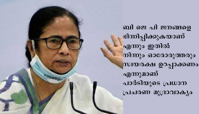 ഭിന്നിപ്പിച്ചു കൊണ്ടുള്ള രാഷ്ട്രീയം പ്രചരിപ്പിക്കുന്നതിലൂടെ ബി.ജെ.പി ബംഗാളിന്റെ സാമൂഹിക ജീവിതത്തെ തകിടം മറിക്കുകയാണെന്ന് തൃണമൂൽ കോൺഗ്രസ് ആരോപിച്ചു. ‘ബിജെപിയിൽ നിന്ന് സ്വയം സുരക്ഷിതരായി അടയാളപ്പെടുത്തുക’ എന്ന ഡിജിറ്റൽ കാമ്പയിൻ സേവ്ബെംഗാൾഫ്രോംബ്.കോം എന്ന വെബ്സൈറ്റ് വഴിയാണ് പ്രചരിപ്പിക്കുന്നത്. ഇതിനോടകം 1,11,000-ത്തിലധികം ആളുകൾ സ്വയം സുരക്ഷിതരാണെന്ന് അടയാളപ്പെടുത്തിയിട്ടുണ്ടെന്ന് പാർട്ടി പറയുന്നു.