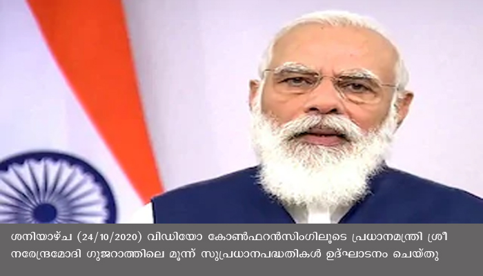 ന്യൂ ഡെൽഹി: ശനിയാഴ്ച (24/10/2020) വിഡിയോ കോണ്ഫറന്സിംഗിലൂടെ പ്രധാനമന്ത്രി ശ്രീ നരേന്ദ്രമോദി ഗുജറാത്തിലെ മൂന്ന് സുപ്രധാനപദ്ധതികള് ഉദ്ഘാടനം ചെയ്തു. കര്ഷകര്ക്ക് 16 മണിക്കുര് വൈദ്യുതി നല്കുന്ന കിസാന് സൂര്യോദയ യോജനയ്ക്ക് ശ്രീ മോദി സമാരംഭം കുറിച്ചു. യു.എന്. മെഹ്ത്ത ഇന്സ്റ്റിറ്റ്യൂട്ട് ഓഫ് കാര്ഡിയോളജി ആന്റ് റിസര്ച്ചിനോടനുബന്ധിച്ചുള്ള പീഡിയാട്രിക് ഹാര്ട്ട് ആശുപത്രിയും അഹമ്മദാബാബിലെ അഹമ്മദബാദ് സിവില് ആശുപത്രിയില് ടെലി കാര്ഡിയോളജിക്ക് വേണ്ടിയുള്ള മൊബൈല് ആപ്ലിക്കേഷനും അദ്ദേഹം ഉദ്ഘാടനം ചെയ്തു. ഗിരിനറിലെ റോപ്പ്വേയും ഈ അവസരത്തില് പ്രധാനമന്ത്രി ഉദ്ഘാടനം ചെയ്തു.