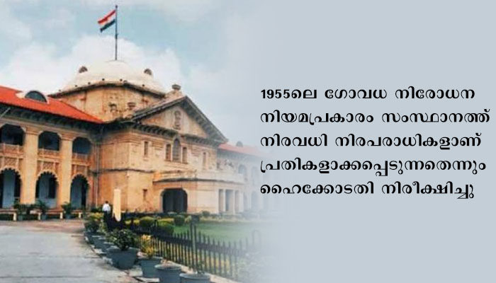 ലഖ്നൗ: ഗോവധ നിരോധന നിയമം ഉത്തര്പ്രദേശില് ദുരുപയോഗം ചെയ്യപ്പെടുന്നതായി അലഹബാദ് ഹൈക്കോടതി. 1955ലെ ഗോവധ നിരോധന നിയമപ്രകാരം സംസ്ഥാനത്ത് നിരവധി നിരപരാധികളാണ് പ്രതികളാക്കപ്പെടുന്നതെന്നും ഹൈക്കോടതി നിരീക്ഷിച്ചു.