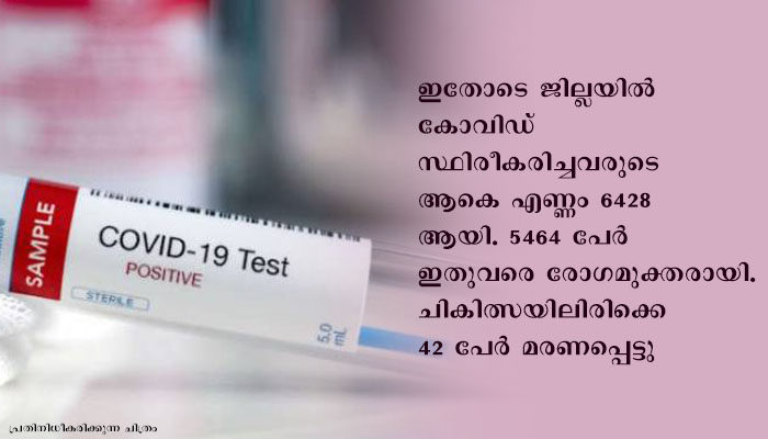 കോവിഡുമായി ബന്ധപ്പെട്ട് ജില്ലയില് ഇന്നലെ (25.10) പുതുതായി നിരീക്ഷണത്തിലായത് 488 പേരാണ്. 398 പേര് നിരീക്ഷണക്കാലം പൂര്ത്തിയാക്കി. നിലവില് നിരീക്ഷണത്തി ലുള്ളത് 5993 പേര്. ഇന്ന് വന്ന 58 പേര് ഉള്പ്പെടെ 652 പേര് ആശുപത്രിയില് നിരീക്ഷണത്തിലാണ്. ജില്ലയില് നിന്ന് ഇന്ന് 1405 പേരുടെ സാമ്പിളുകളാണ് പരിശോധനയ്ക്ക് അയച്ചത്. ഇതുവരെ പരിശോധനയ്ക്ക് അയച്ച 127786 സാമ്പിളുകളില് 125085 പേരുടെ ഫലം ലഭിച്ചു. ഇതില് 118657 നെഗറ്റീവും 6428 പോസിറ്റീവുമാണ്.