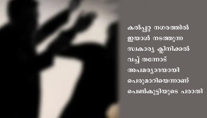 കല്‍പ്പറ്റ നഗരത്തില്‍ ഇയാള്‍ നടത്തുന്ന സ്വകാര്യ ക്ലിനിക്കല്‍ വച്ച്‌ തന്നോട് അപമര്യാദയായി പെരുമാറിയെന്നാണ് പെണ്‍കുട്ടിയുടെ പരാതി.
