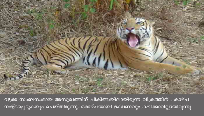 മംഗളൂരു: പിലിക്കുള ബയോളജിക്കല് പാര്ക്കിലെ റോയല് ബംഗള് കടുവ വിക്രം ഇന്നലെ(26/10/2020) അന്തരിച്ചു. 21 വയസായിരുന്നു. 2003 ല് വിക്രത്തിന് 4 വയസുളളപ്പോഴാണ് ഷിവമൊഗ്ഗ- തവരെക്കൊപ്പ കടുവ സങ്കേതത്തില് നിന്ന് ഇവിടെ എത്തിച്ചതെന്ന് പാര്ക്ക് ഡയറക്ടര് എച്ച് ജയപ്രകാശ് ബണ്ഡാരി പറഞ്ഞു.