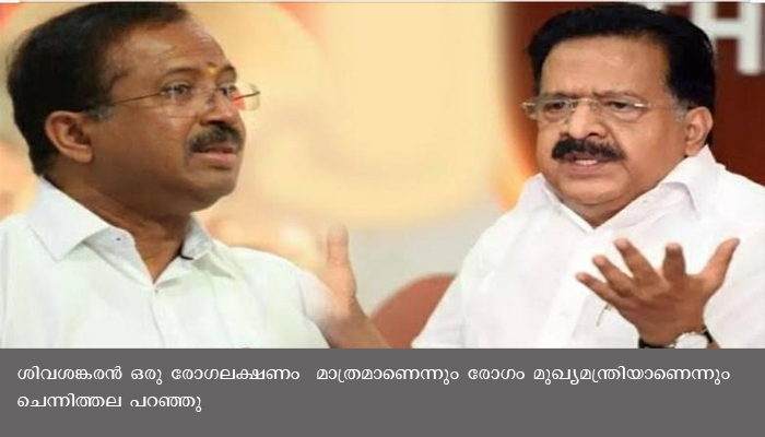 സ്പ്രിംഗ്ളർ ഇടപാട് മുതൽ ശിവശങ്കരനു വേണ്ടി ശക്തമായി വാദിച്ചയാളാണ് മുഖ്യമന്ത്രി. ശിവശങ്കരൻ ഒരു രോഗലക്ഷണം മാത്രമാണെന്നും രോഗം മുഖ്യമന്ത്രിയാണെന്നും ചെന്നിത്തല പറഞ്ഞു.