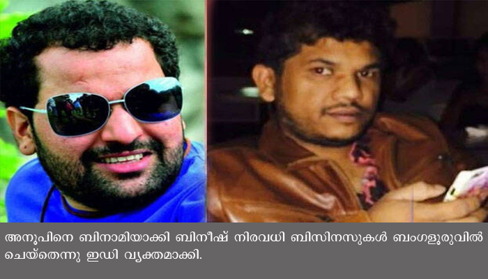 അറസ്റ്റിന് തൊട്ടുമുന്പും അനൂപ് ബിനീഷിനെ ഫോണില് വിളിച്ചുവെന്നും ഇഡി പറഞ്ഞു. ബിനീഷ് സ്ഥിരമായി ബംഗളൂരു സന്ദര്ശിച്ചിരുന്നുവെന്നും കണ്ടെത്തിയിട്ടുണ്ട്. രണ്ടു പേരും തമ്മിൽ അടുത്ത സൗഹൃദമാണുള്ളത് എന്നും ഇഡി വ്യക്തമാക്കി.മൂന്ന് മുതല് ഏഴ് വര്ഷംവരെ തടവ് ശിക്ഷ ലഭിക്കാവുന്ന കള്ളപ്പണം വെളുപ്പിക്കല് നിരോധന നിയമപ്രകാരമാണ് ബിനീഷിനെതിരെ കേസെടുത്തത്. ബിനീഷിനെ 29-10-2020 വെള്ളിയാഴ്ച രാവിലെ ബംഗളൂരുവിലെ ഇഡി ആസ്ഥാനത്തേക്ക് കൊണ്ടുവന്നു. നാല് ദിവസത്തേക്കാണ് കസ്റ്റഡി കാലാവധി.