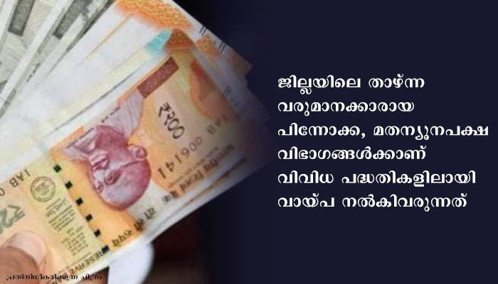 ജില്ലയിലെ താഴ്ന്ന വരുമാനക്കാരായ പിന്നോക്ക, മതന്യൂനപക്ഷ വിഭാഗങ്ങള്ക്കാണ് വിവിധ പദ്ധതികളിലായി വായ്പ നല്കിവരുന്നത്. പ്രഫഷണല് കോഴ്സുകള് പഠിക്കുന്നതിനുള്ള വിദ്യാഭ്യാസ വായ്പയായി 5.55 കോടി രൂപയാണു 146 വിദ്യാര്ത്ഥികള്ക്കു നല്കിയത്. തൊഴില് സംരംഭങ്ങള് തുടങ്ങുന്നതിനും നടത്തുന്നതിനുമായി സ്വയംതൊഴില് വായ്പയായി 1,189 പേര്ക്ക് 24.38 കോടി രൂപയും നല്കി.