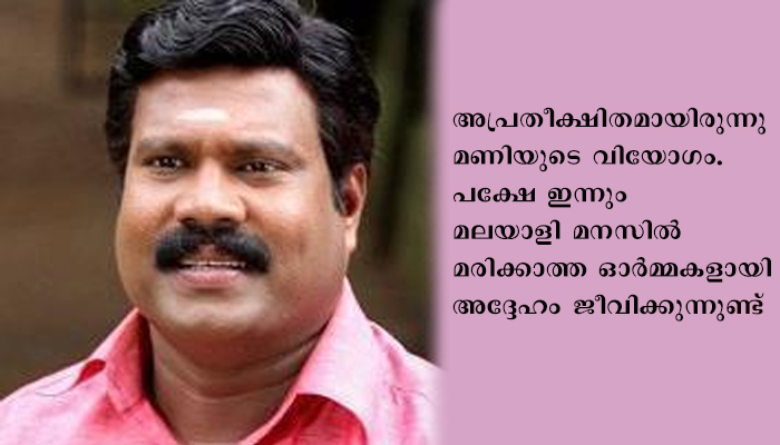 ചാലക്കുടി: മിമിക്രിയിലൂടെയും നാടന്പാട്ടിലൂടെയും സിനിമയിലൂടെയും ജനഹൃദയങ്ങളിൽ ചിര പ്രതിഷ്ഠ നേടിയ കലാഭവന് മണി വിടപറഞ്ഞിട്ട് നാലു വര്ഷം പിന്നിട്ടിരിക്കയാണ്. തികച്ചും അപ്രതീക്ഷിതമായിരുന്നു മണിയുടെ വിയോഗം. പക്ഷേ ഇന്നും മലയാളി മനസിൽ മരിക്കാത്ത ഓർമ്മകളായി അദ്ദേഹം ജീവിക്കുന്നുണ്ട്. തീരെ ദരിദ്രമായ പശ്ചാത്തലത്തില് നിന്നും സ്വപ്രയത്നം കൊണ്ടാണ് മണി ഉയര്ന്നുവന്നത്. കോമഡി താരമായി നായകനും വില്ലനും സഹനടനുമൊക്കെയായി തിളങ്ങിയ അദ്ദേഹത്തോട് മലയാളികള്ക്ക് ഏറെ സ്നേഹമാണ്.
