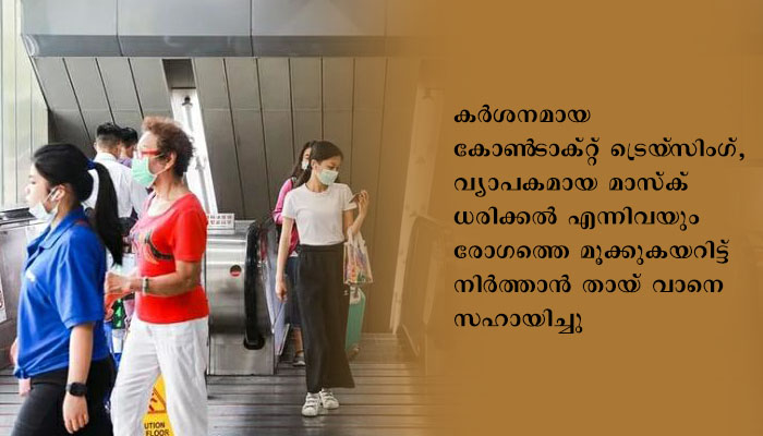 23 ദശലക്ഷം ജനങ്ങളുള്ള ഈ ദ്വീപ് രാജ്യത്ത് 553 കേസുകൾ മാത്രമാണ് ഇതുവരെ സ്ഥിരീകരിച്ചത്. അതിൽ തന്നെ ഏഴ് മരണങ്ങൾ മാത്രമാണുണ്ടായത്. അതിർത്തികൾ നേരത്തേ അടയ്ക്കുകയും യാത്ര കർശനമായി നിയന്ത്രിക്കുകയും ചെയ്തതാണ് തായ് വാന് രക്ഷയായതെന്ന് വിദഗ്ദ്ധർ പറയുന്നു. കർശനമായ കോൺടാക്റ്റ് ട്രെയ്സിംഗ്, വ്യാപകമായ മാസ്ക് ധരിക്കൽ എന്നിവയും രോഗത്തെ മൂക്കുകയറിട്ട് നിർത്താൻ തായ് വാനെ സഹായിച്ചു.