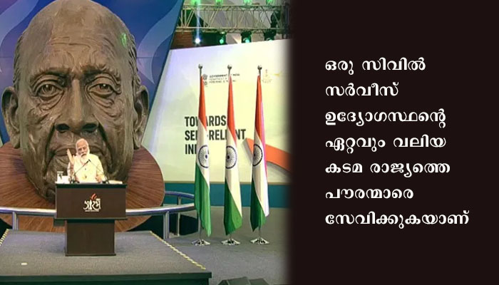 ന്യൂഡല്‍ഹി: ഒരു സിവില്‍ സർവീസ് ഉദ്യോഗസ്ഥന്റെ ഏറ്റവും വലിയ കടമ രാജ്യത്തെ പൗരന്മാരെ സേവിക്കുകയാണ്” എന്ന സര്‍ദാര്‍ വല്ലഭായി പട്ടേലിന്റെ തത്വശാത്രം പിന്തുടരാന്‍ ഓഫീസര്‍ ട്രെയിനികളുടെ അവതരണങ്ങള്‍ക്ക് സാക്ഷ്യം വഹിച്ചശേഷം നടത്തിയ തന്റെ അഭിസംബോധനയില്‍ പ്രധാനമന്ത്രി പ്രൊബേഷണർമാരോട് അഭ്യര്‍ത്ഥിച്ചു.