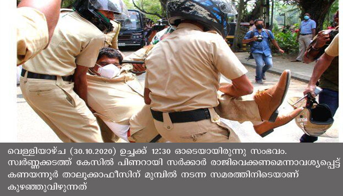 ഡിസിസി ആഫീസിനുമ്പില് നിന്ന് ആരംഭിച്ച യൂത്ത് കോണ്ഗ്രസ് പ്രകടനം താലൂക്ക് ഓഫീസിനുമുമ്പില് എത്തി പ്രധാന നേതാക്കളുടെ പ്രസംഗത്തിന് ശേഷം ധര്ണ്ണയില് പങ്കെടുത്ത നൂറോളം പ്രവര്ത്തകര് പോലീസ് സര്ക്കാരിനെതിരെ മുദ്രാവാക്യം വിളിച്ച് ബാരിക്കേഡ് തളളിമാറ്റാന് ശ്രമിച്ചു. ആ സമയം അസിസ്റ്റന്റ് കമ്മീഷണറുടെ നേതൃത്വത്തില് 75 ല് പരം പോലീസുകാര് ജലപീരങ്കി ഉപയോഗിച്ച് പ്രതിഷേധക്കാരെ തുരത്തുന്നതിനിടെയാണ് ലാല്ജി കുഴഞ്ഞുവീണത്.