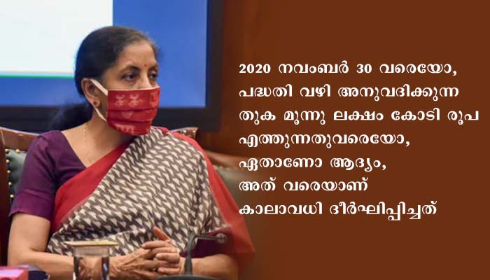 ന്യൂ ഡൽഹി: കേന്ദ്ര ഗവൺമെന്റ്, ഈട് ഇല്ലാത്ത വായ്പ പദ്ധതിയായ എമർജൻസി ക്രെഡിറ്റ് ലൈൻ ഗ്യാരണ്ടി സ്കീം ദീർഘിപ്പിച്ചു. 2020 നവംബർ 30 വരെയോ, പദ്ധതി വഴി അനുവദിക്കുന്ന തുക മൂന്നു ലക്ഷം കോടി രൂപ എത്തുന്നതുവരെയോ, ഏതാണോ ആദ്യം, അത് വരെയാണ് കാലാവധി ദീർഘിപ്പിച്ചത്.