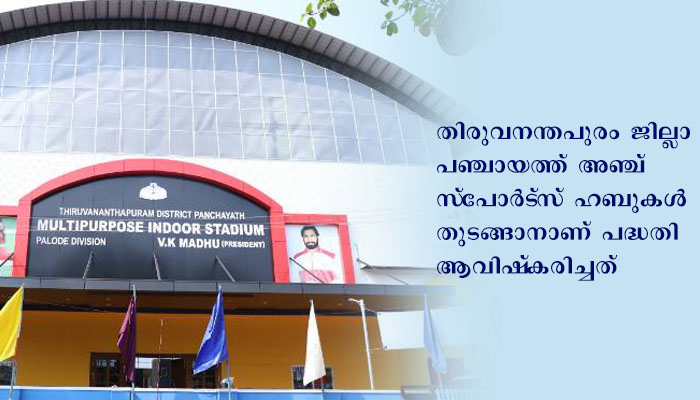 തിരുവനന്തപുരം ജില്ലാ പഞ്ചായത്ത് അഞ്ച് സ്പോര്ട്സ് ഹബുകള് തുടങ്ങാനാണ് പദ്ധതി ആവിഷ്കരിച്ചത്. പള്ളിക്കല്, ഉഴമലയ്ക്കല്, പ്ലാമൂട്ടുകട എന്നിവിടങ്ങളില് ഹബുകള് തുടങ്ങിക്കഴിഞ്ഞു. പെരിങ്ങമലയിലേത് നാലാമത്തേതാണ്. മിതൃമലയില് അഞ്ചാമത്തെ സ്പോര്ട്സ് സ്റ്റേഡിയം പൂര്ത്തീകരണ ഘട്ടത്തിലാണ്. വിതുരയില് പി. ടി ഉഷ സ്റ്റേഡിയത്തിന്റെ വികസനത്തിന് 1.60 കോടി രൂപയുടെ പദ്ധതിയാണ് ആവിഷ്കരിച്ചത്.