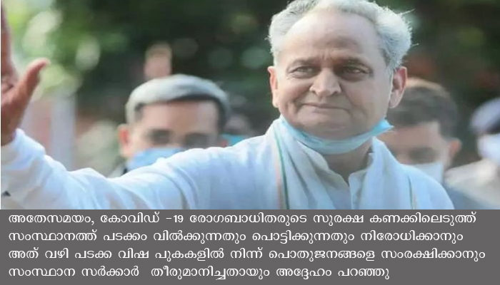 അതേസമയം, കോവിഡ് -19 രോഗബാധിതരുടെ സുരക്ഷ കണക്കിലെടുത്ത് സംസ്ഥാനത്ത് പടക്കം വില്‍ക്കുന്നതും പൊട്ടിക്കുന്നതും നിരോധിക്കാനും അത് വഴി പടക്ക വിഷ പുകകളില്‍ നിന്ന് പൊതുജനങ്ങളെ സംരക്ഷിക്കാനും സംസ്ഥാന സര്‍ക്കാര്‍ തീരുമാനിച്ചതായും അദ്ദേഹം പറഞ്ഞു.