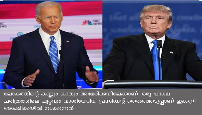 വാഷിങ്ടണ്: ഡൊണാൾഡ് ട്രംപ് അമേരിക്കയുടെ പ്രസിഡൻ്റായി തുടരുമോ, ജോ ബൈഡനെന്ന കരുത്തനായ ഡെമോക്രാറ്റിക് സ്ഥാനാർത്ഥി പ്രസിഡൻ്റ് സ്ഥാനത്തേക്ക് വരുമോ . ലോകത്തിൻ്റെ കണ്ണും കാതും അമേരിക്കയിലേക്കാണ്. ഒരു പക്ഷേ ചരിത്രത്തിലെ ഏറ്റവും വാശിയേറിയ പ്രസിഡന്റ് തെരഞ്ഞെടുപ്പാണ് ഇക്കുറി അമേരിക്കയിൽ നടക്കുന്നത്.