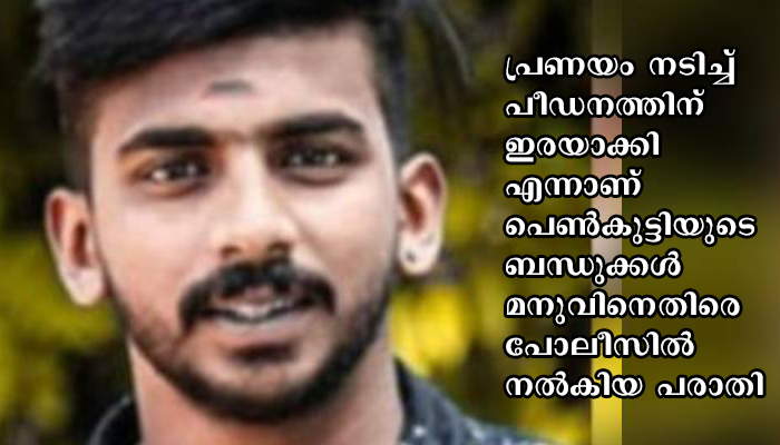 23-10-2020 നാണ് ആണ് പീഡനത്തിനിരയായ 16കാരി തീകൊളുത്തി ആത്മഹത്യയ്ക്ക് ശ്രമിച്ചത്. ഗുരുതരമായി പൊള്ളലേറ്റ യുവതി കോട്ടയം മെഡിക്കൽ കോളേജിൽ വച്ച് 01-11-2020 ന് മരണമടഞ്ഞു. പ്രണയം നടിച്ച് പീഡനത്തിനിരയാക്കി എന്നാണ് പെണ്‍കുട്ടിയുടെ ബന്ധുക്കള്‍ മനുവിനെതിരെ പോലീസില്‍ നല്‍കിയ പരാതി. പരാതിയെ തുടർന്ന് അറസ്റ്റിലായ പ്രതി ജയിലിൽ വച്ചാണ് ജീവനൊടുക്കിയത്.